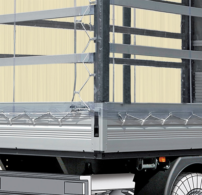 Normal montaj araçlarını kullanarak özel eğitim ve modifikasyon gerektirmeden kasaya uygulama hazır tam halka ve branda (2 metre iç yükseklik) seti. Montaj için yaklaşık 2 saat gereklidir. Aksesuarlar ve isteğe bağlı parçalar
